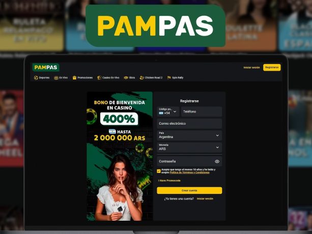 El procedimiento de registro consiste en pasos consecutivos que se completan en pocos minutos. Ingresa al sitio oficial de PampasBet desde un navegador de computadora, la versión móvil del sitio o la aplicación oficial.